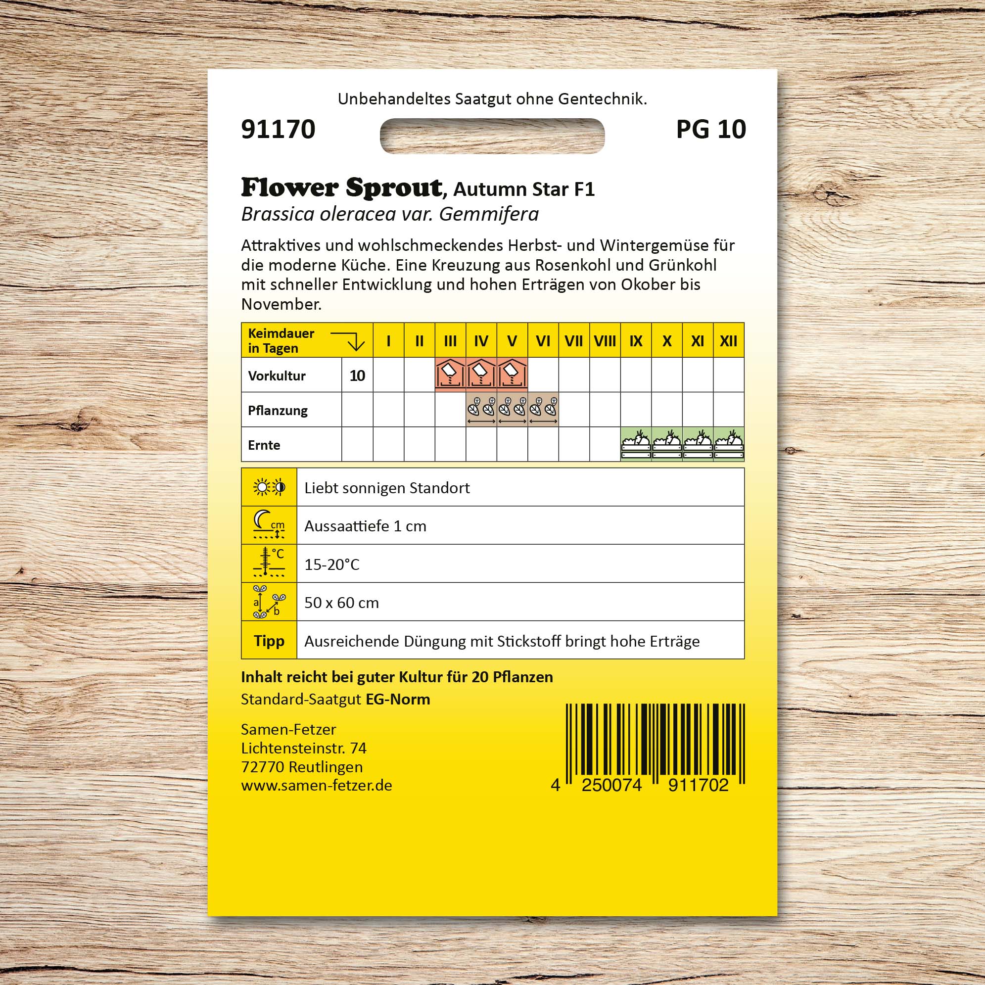| Inhalt ausreichend für: | 20 Pflanzen |