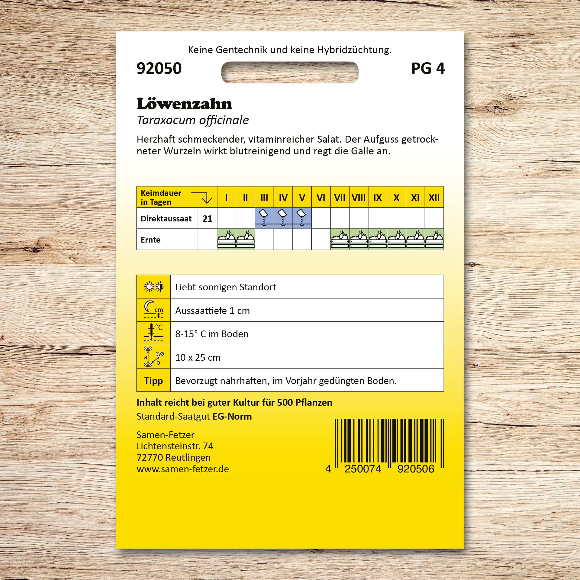 | Aussaat: | März, April, Mai |