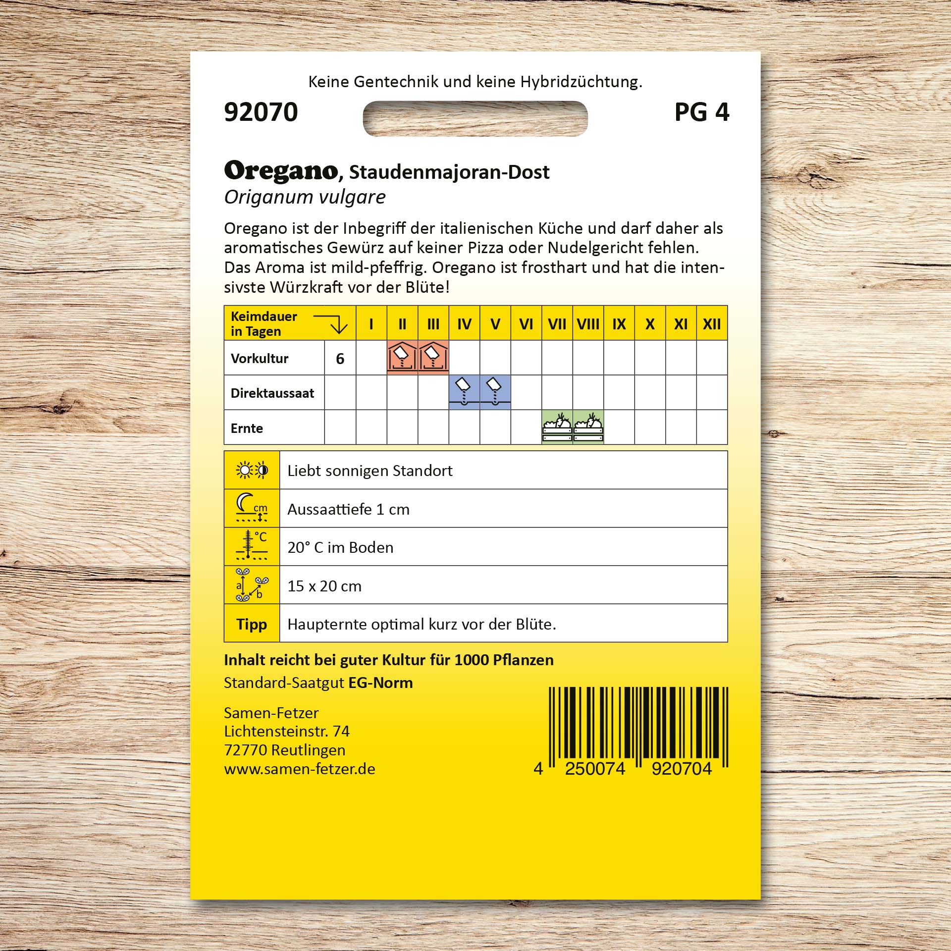 | Aussaat: | April, Mai |