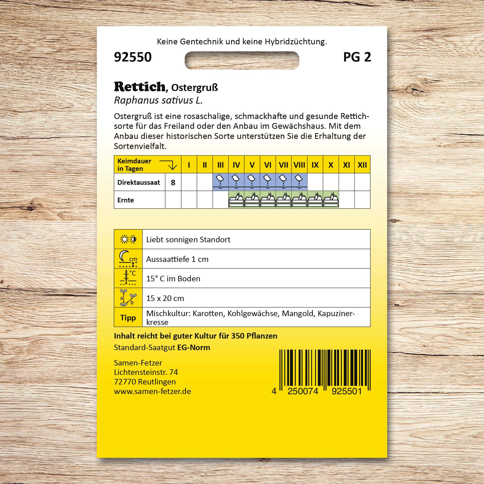| Keimtemperatur: | 15 °C |